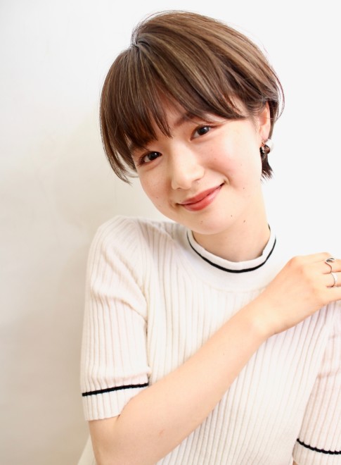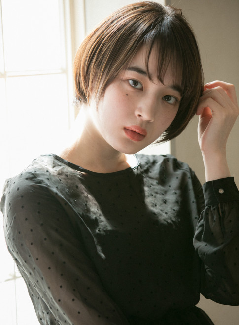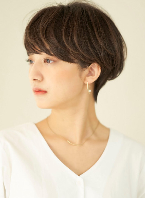 ふわっとエアリーな質感に仕上げたショートスタイルです。どんな顔型にも合わせやすいひし形シルエットなので、ショートヘア初心者さんでもトライしやすいスタイルです。暗髪でも重たく見えないのもポイント。