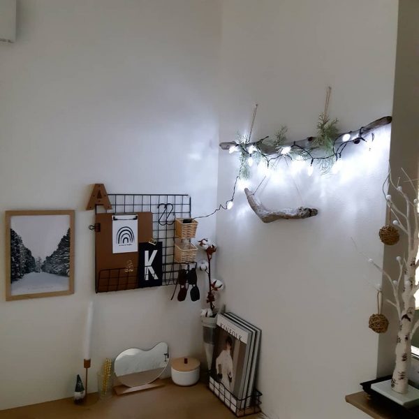 ツリーに巻いたり、壁に飾ったりと色んな飾り方のあるオーナメントライトですが、こんな風にチェストやテーブルに置いて飾っても素敵ですよ。
