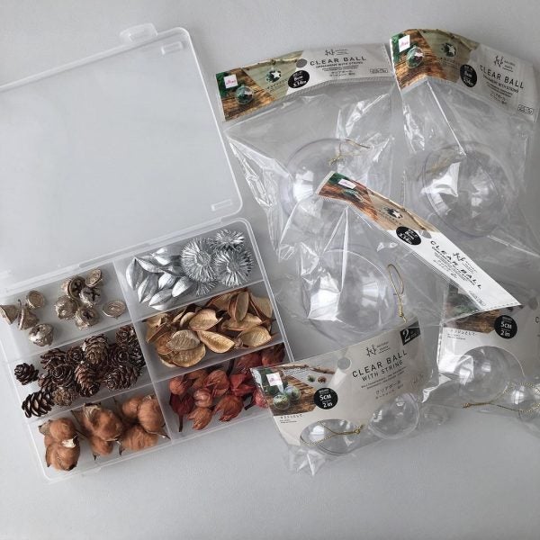 こちらでは、ドライフラワーなどを入れて可愛いオーナメントを作れられています。他のオーナメントとの相性も抜群で、とても綺麗ですよね。