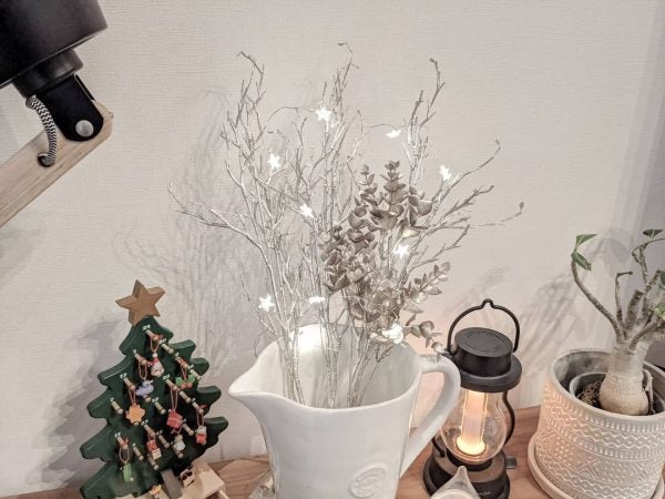 こちらは、ダイソーのフェイクグリーンとイルミネーションライトを組み合わせて飾られています。