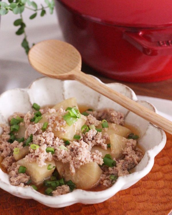 そんな時の大根の煮物メニューにおすすめなのが、豚ひき肉と一緒に煮込んだスープまで美味しいそぼろ煮。