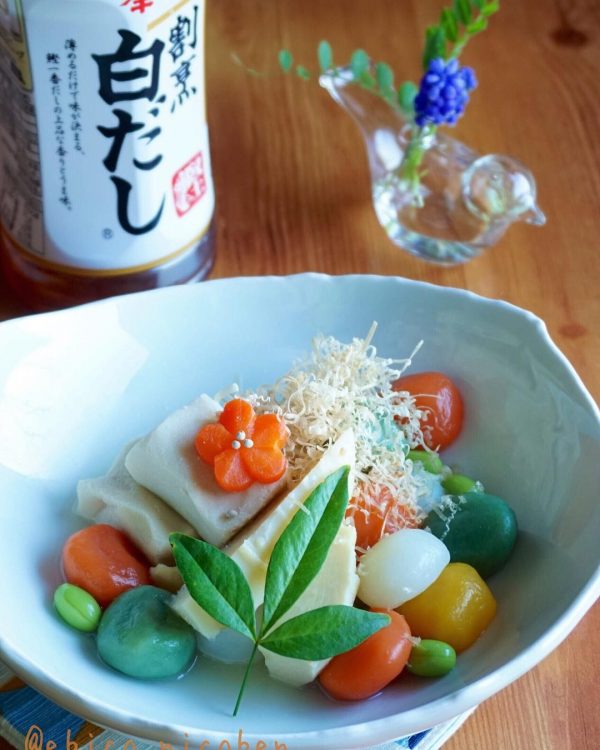 作り方のポイントは、一度冷まして高野豆腐にしっかり味がしみ込むようにすることです。食べる時は温め直しても、冷たいままでも美味しく食べられます。