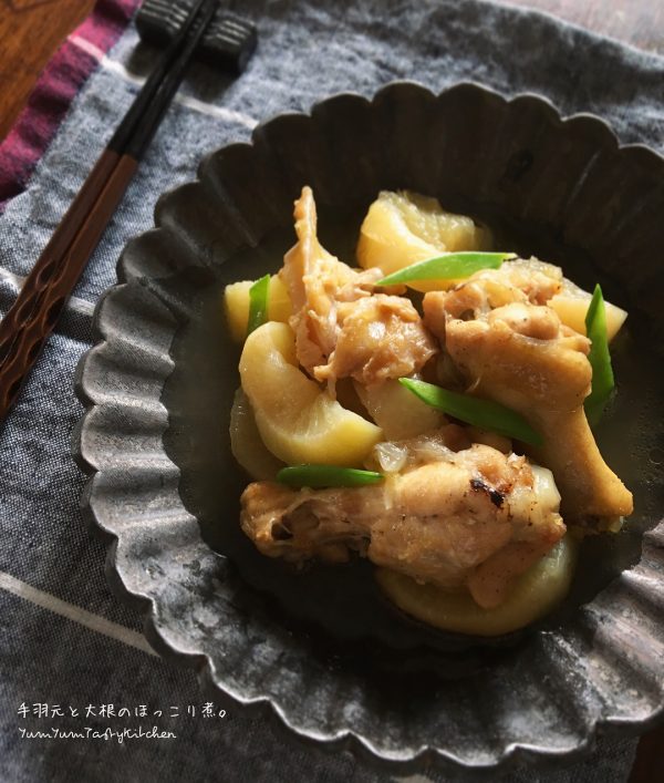 手羽元は煮物に使いやすいお肉で、和食のシンプルな味付けで大根と一緒に煮物にするのがおすすめです。