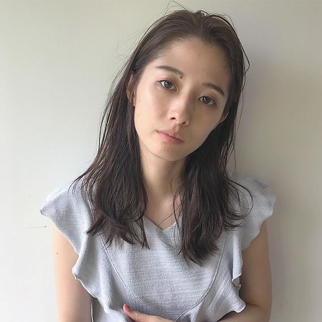無造作に仕上げたかき上げ前髪は、レイヤー多めのミディアムヘアと相性抜群です。
