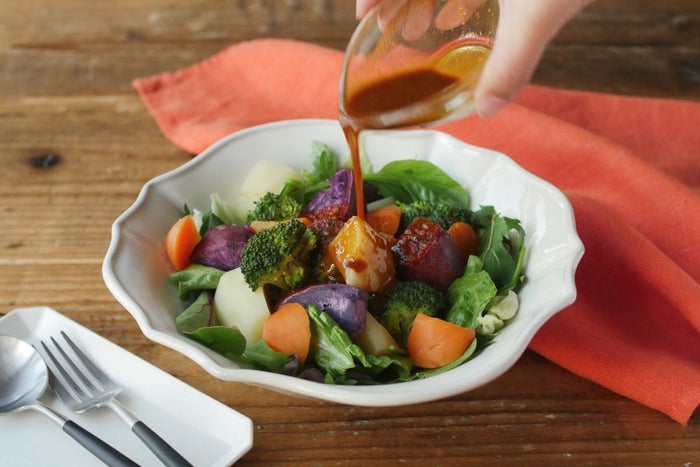 このドレッシングは、生の野菜だけではなく、ゴロゴロと大きく切る温野菜にもぴったり。肉や魚をメインとしたおかずサラダとも相性バツグンです。(※1,2)