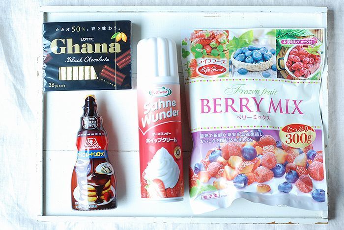 ・ホイップクリーム、チョコシロップ、冷凍ベリー等 お好みで