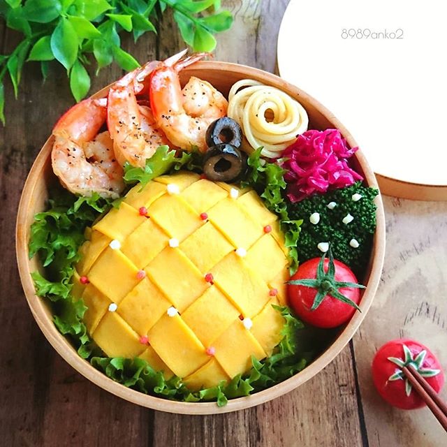 こちらのオムライス弁当は、卵を編み込んで作ったユニークなもの。