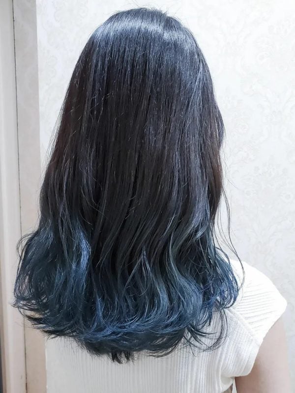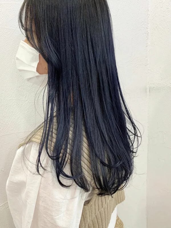 派手なカラーに抵抗がある方は、こちらのような深いネイビーの髪色がおすすめです。