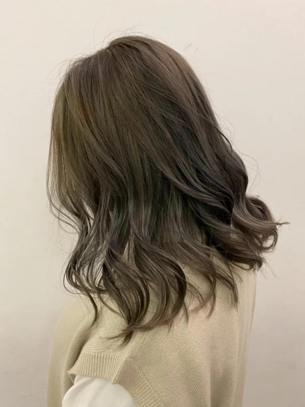 パーソナルカラーがグリーンベースの方の女性らしさを引き立ててくれる、ベージュ系の髪色です。こちらは、13トーンのベージュバイオレットで染めています。