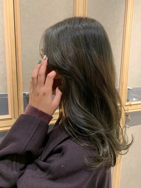 暗めの髪色だと野暮ったい印象に見えがちですが、ツヤ感のあるオリーブをプラスすることで、重たくならず上品な仕上がりになります。