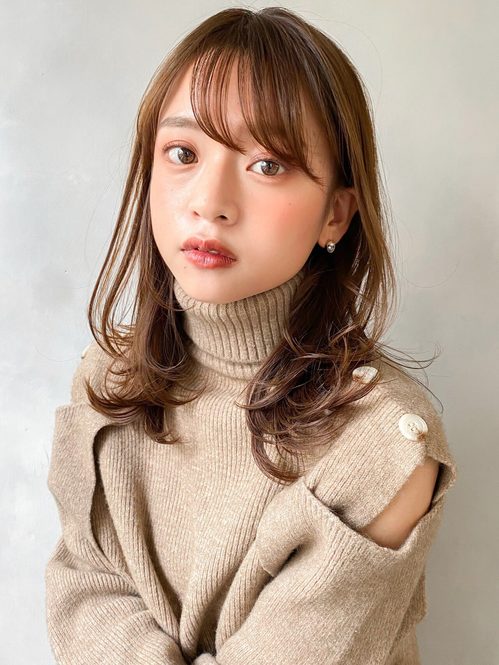 前髪もワンカールさせたり、顔周りに後れ毛を残したりなどの一手間を加えると、抜け感と小顔効果の両方を備えたスタイルに。 サラッと流れるようなナチュラルな髪の質感がオンナ度をグッと引き上げてくれます。また、より髪の動きを強調するならハイライトやグラデーションカラーを仕込んでおくのもおすすめです。