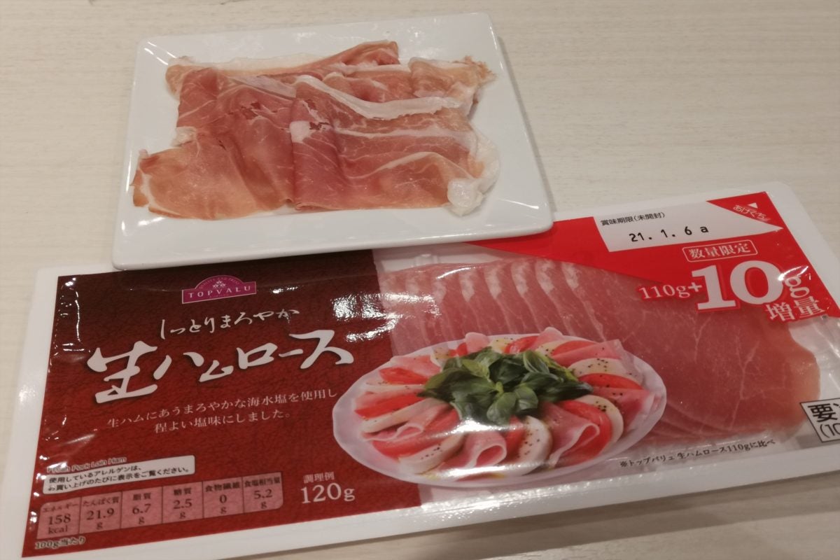 余談だが、イオンのプライベートブランドであるトップバリュの生ハムと比較してみると、意外とトップバリュの生ハムも食感が良く美味しいことがわかった。