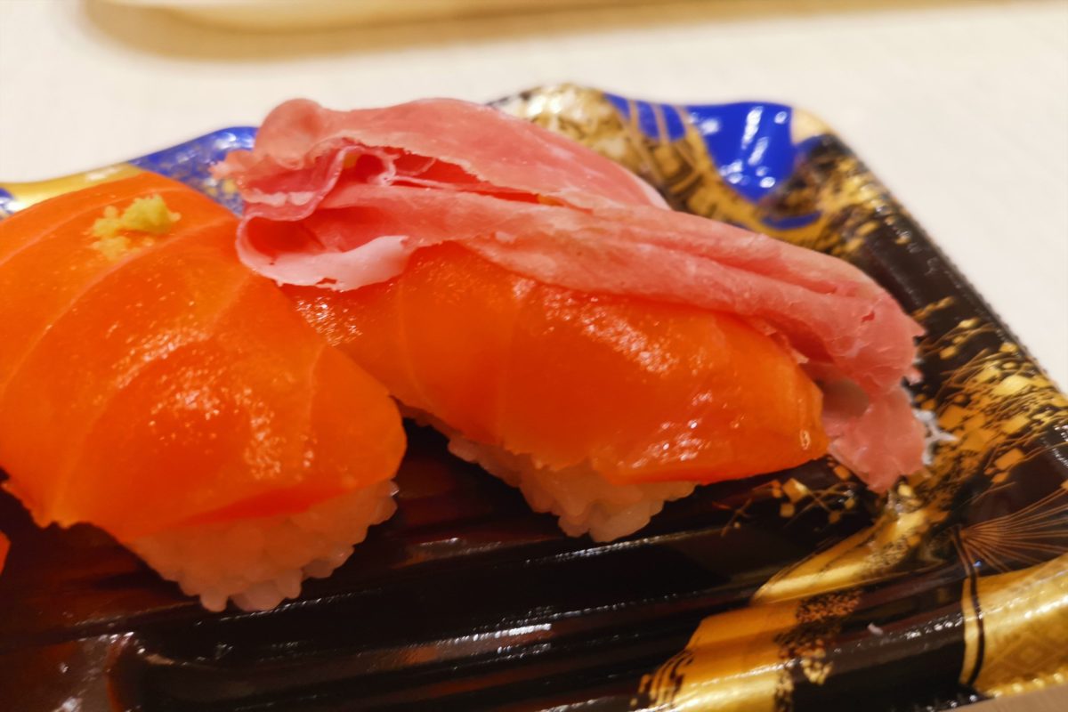 醤油のかわりに生ハムを使うことで塩気と旨味をプラスでき、これはこれでかなり美味しい。マヨネーズがついた寿司に組み合わせるのがもっとも合うかもしれない。