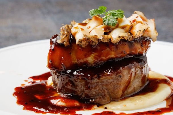こちらは、俺のフレンチでダントツの人気メニュー「牛フィレとフォアグラのロッシーニ」。「俺のグランテーブル」ではアワビをのせ、岩手県産アワビ醤油吟醸調味料を使ったソースを合わせた贅沢なひと皿が堪能できます。デートや女子会はもちろん、おひとり様でも至福のひとときを過ごせそうですね。