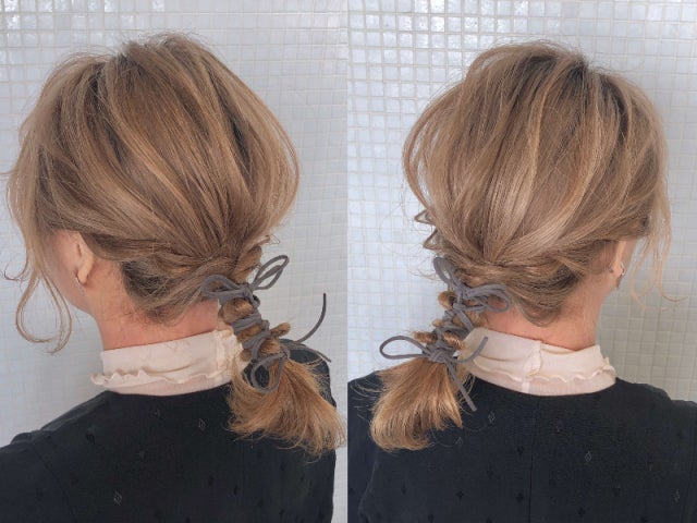 しかも、髪色や服装に合わせて紐の色も変えることで同じアレンジでもイメージを変化させることもできます。