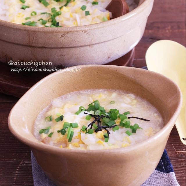 シンプルなお粥よりも栄養が取れて、元気になる食事ができそうです。生姜を入れると、さらに体が温まりますよ。