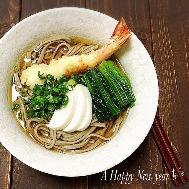 年越しそばにも使えるこのレシピは、温かいつゆをたっぷりとかけて召し上がります。