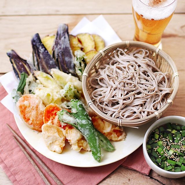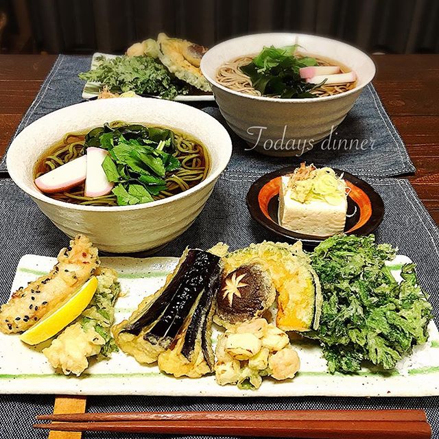栄養満点のおすすめレシピ!天ぷらの茶そば定食