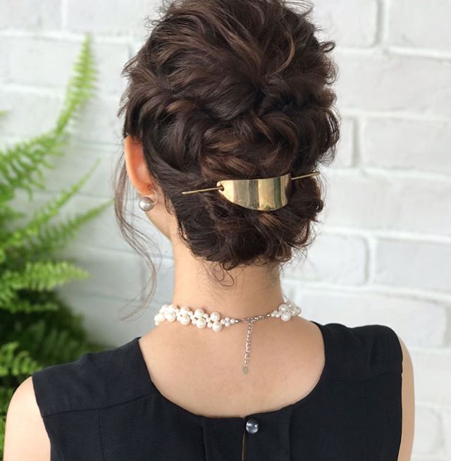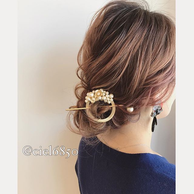 ヘアアクセサリー無しだとカジュアルでデイリーなまとめ髪の印象ですが、パールやビジューのついたマジェステをオンすることで華やかになり簡単にドレスアップ。