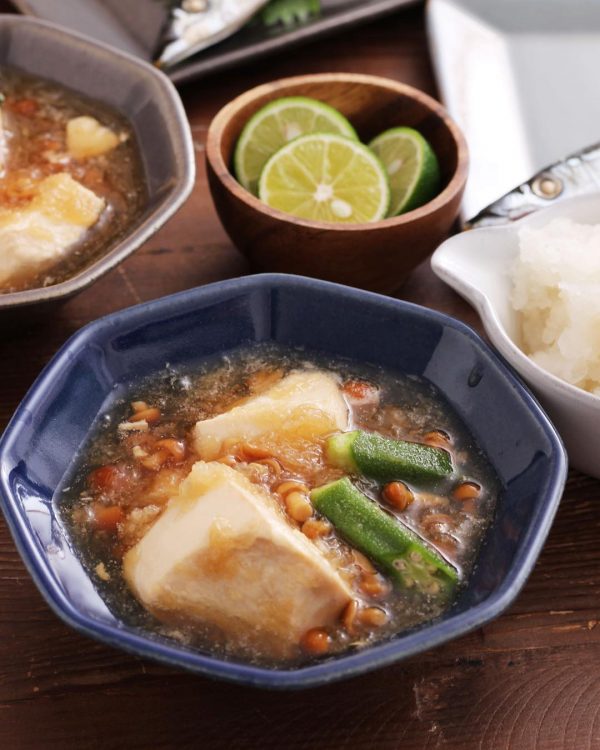 あんかけ煮汁はめんつゆで味付けし、なめことオクラのネバネバで片栗粉を使わないでも汁にとろみがつきます。