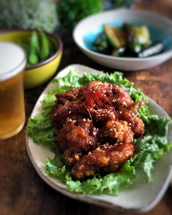 アツアツの甘辛チキンをおつまみにすれば、ビールがどんどん進みます。