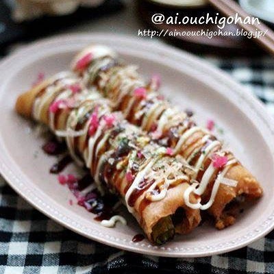 春巻きの皮にチーズと長ネギを並べてくるくる巻いて、巻き終わりを水で溶いた小麦粉でしっかりと閉じたら油で揚げるだけです。