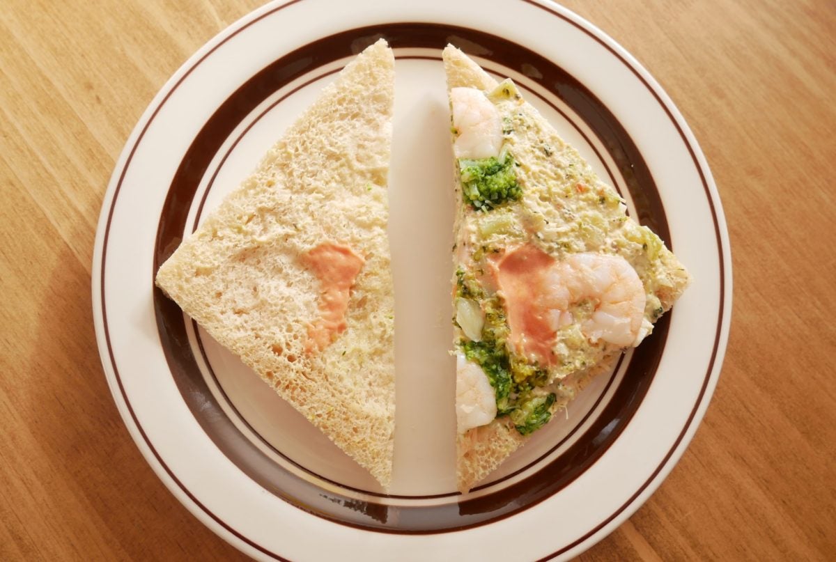 食べると、タルタルサラダの味わいが口に広がり、そこにエビやブロッコリーが次々と主張してくる感じで飽きが来ない。ただのサラダサンドではなく、しっかりとエビを楽しめるのが本当に良い。これはウマいぞ...!
