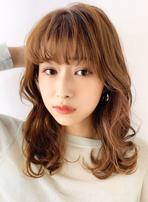 巻いた時にAラインシルエットになるよう、低めの位置にレイヤーを入れた大人可愛いスタイルです。顔周りは小顔に見えるように、フェイスラインを包み込むようにレイヤーを。ふわっと巻いた前髪もポイントです。