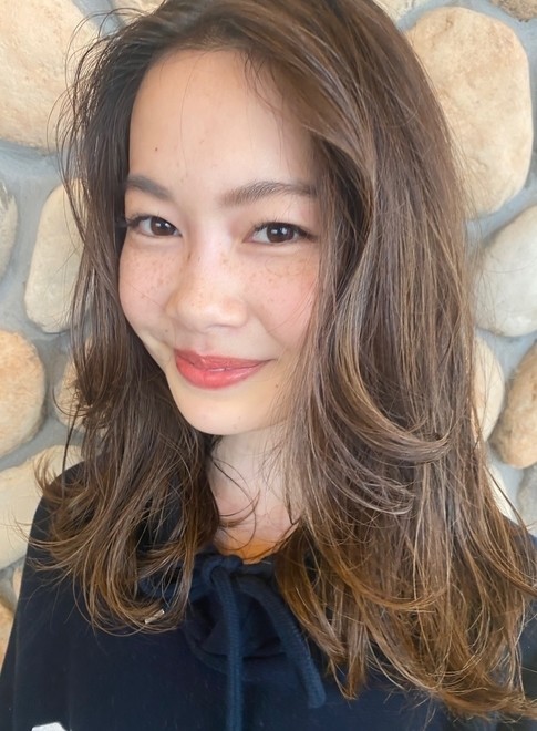 ナチュラルな雰囲気が大人可愛いセミロングヘアです。顔まわりを包み込むようにレイヤーを入れ、小顔効果とニュアンスをプラス。カラーはナチュラルベージュです。