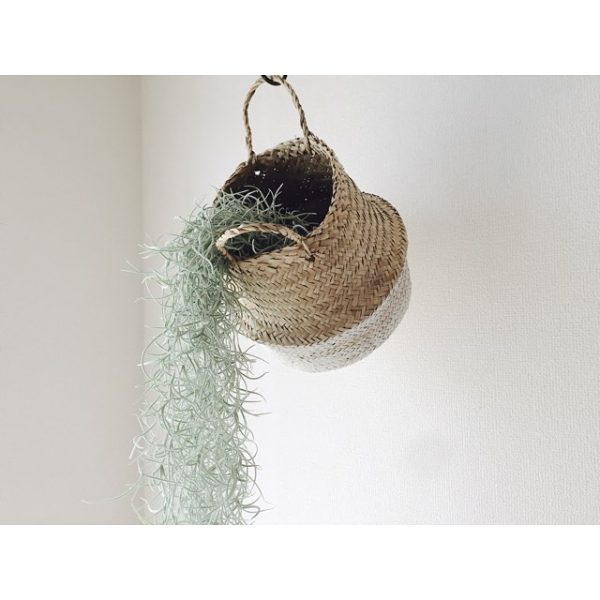 なかなか持つ機会がなくなったかごバッグは、グリーンディスプレイに活用するのがおすすめです。ナチュラルなバッグとグリーンの相性は抜群。