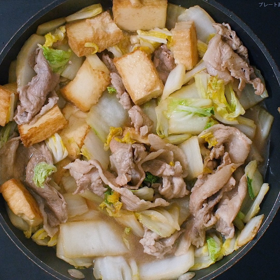 ・豚こま肉 … 200g・白菜 … 1/6株・厚揚げ … 1枚・砂糖 … 大さじ1杯・a. 酒 … 大さじ2杯・a. みりん … 大さじ2杯・a. しょうゆ … 大さじ2杯・サラダ油 … 小さじ2杯【下ごしらえ】