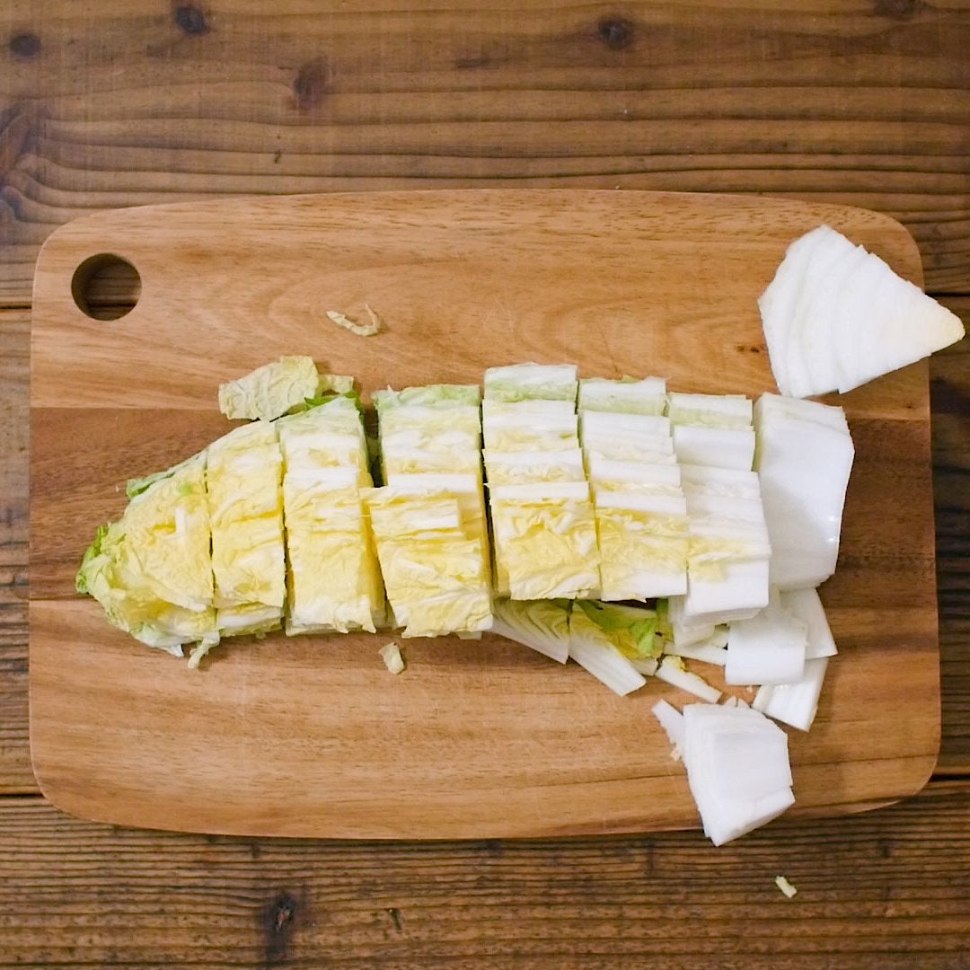 白菜はざく切りにします。