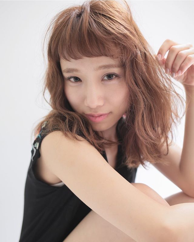 パーマで縦ラインを強調してぽっちゃり頬をカバーしつつ、チラッとおでこを見せたシースルーバングで縦長シルエットに。
