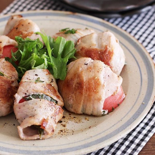 ジューシーなトマトの野菜を豚バラ巻きにすることで、とても美味しいマリアージュが生まれますよ。