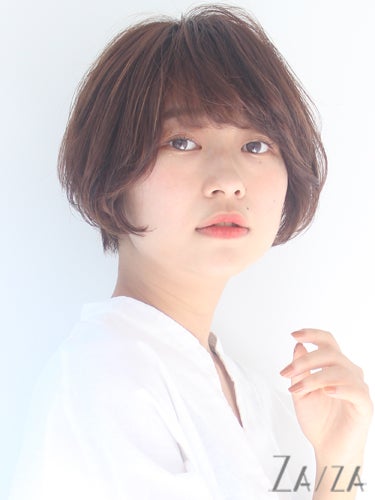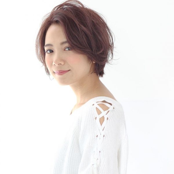 軽くパーマをかけると、ふんわりとナチュラルにボリュームアップができ、やわらかい印象のショートになるため顔タイプがキュートの方に似合う仕上がりに。