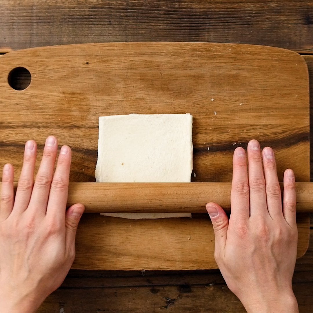 食パンはめん棒を使って薄く伸ばします。