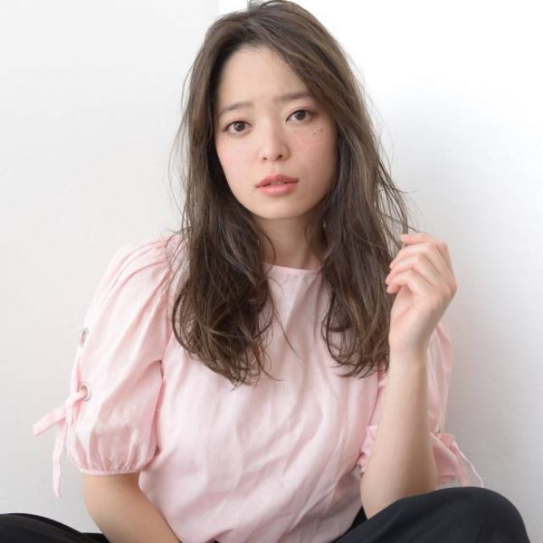 後ろ髪は顔周りを外に巻き、大きめの波ウェーブにすると伸ばしかけ前髪を活かした透明感抜群のヘアスタイルが叶いますよ♡