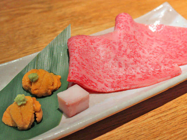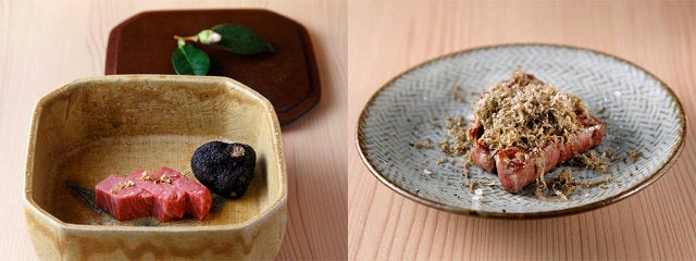 「大山黒牛」の特徴はキメ細かなサシ。常温で溶けてしまうほどの繊細な脂と赤身のバランスがすばらしく、深みがあるのにさっぱりとした味わいを楽しめる。