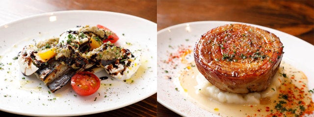 肉という素材そのものを堪能したいなら、ぜひ頼むべきは「熊本赤牛ランプ藁焼き」(写真上・右)。オリーブオイルとイギリスの海塩、インドの黒胡椒のみで味付けされた赤身肉は、ワインとともにゆっくりと時間をかけていただきたい。