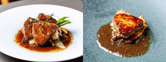 さらに「天然真鯛のポワレ、温かいパテとともに」(写真上・右)は、皮目はパリッと香ばしく焼き上げられているのに、身にはほとんど火が入っておらずふっくらとやわらかなことに驚かされる。