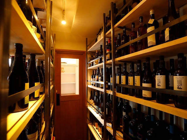 ワインに惚れ込んだ坂井シェフゆえ、セラーへのこだわりも格別。店内には、約700本を収納できるセラー室および約200本を収納できるセラーを完備している。