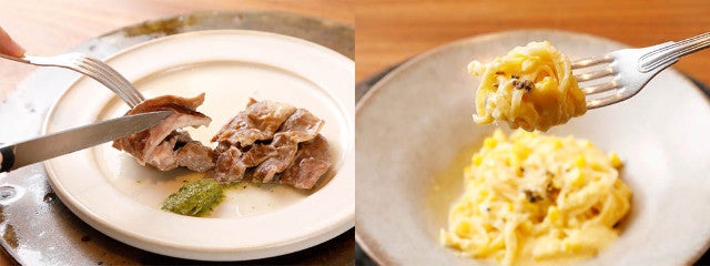 一方、「タリオリーニ とうもろこしのソース」は、とうもろこしを約45分間蒸して甘みを引き出した後、バターと塩のみで味付けしたソースに仕立てて提供。野菜が主役なのにこんなに食べごたえのあるパスタがあるなんて! と感動すること必至である。