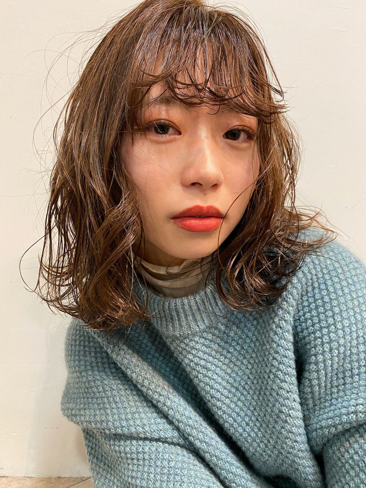 顔周りゆるふわアンニュイなパーマをプラスすることで、ベース顔の顔型が気にならない髪型になりますよ。ヘアオイルを使ってウェットに仕上げましょう。今ドキヘアが完成します。