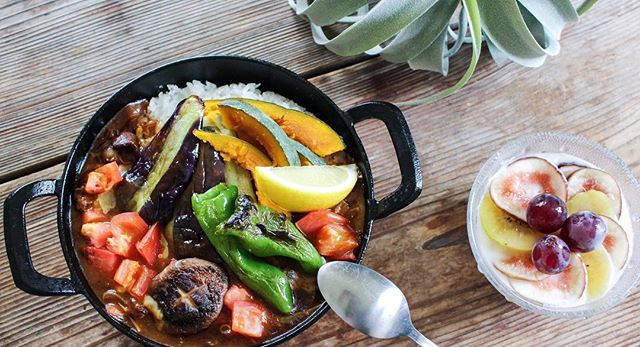 ハヤシライスとご飯をスキレットに入れておしゃれに仕上げています。
