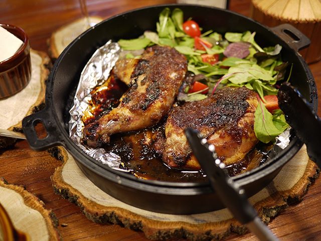 スキレットを石焼きの代わりに使用した人気のメニューです。