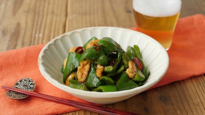 なんで今まで思い浮かばなかったのだろう……!というくらい、辛いもの好きの方にぜひ試して欲しい無限ピーマンが完成しました。にんにくとしょうがの香りをじっくりと油にうつしてから、さっとピーマンを炒めます。唐辛子もいっしょに加熱することで、辛味はマシマシに。花椒の香りと痺れる辛さにお酒もご飯も進むひと品ですよ。