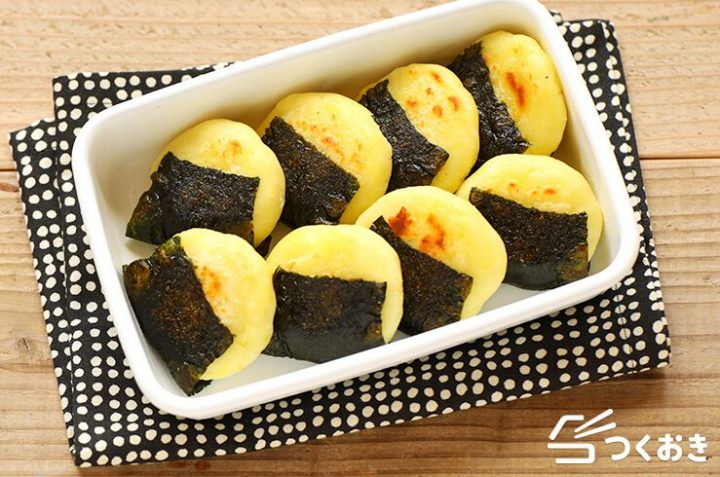 じゃがいもはレンチンしてから、片栗粉や牛乳、塩を加えてマッシュするればOK。あとはチーズを入れて成形し、のりを巻いてフライパンで焼くだけ。