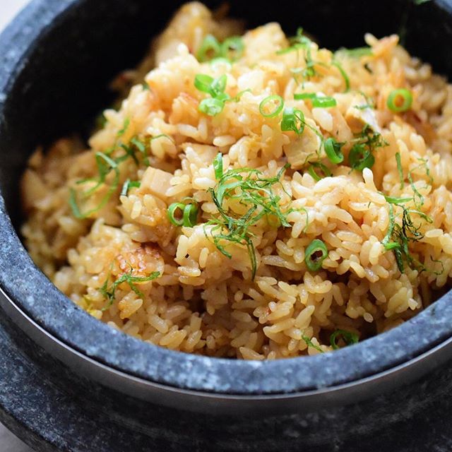 もつ鍋の献立には、炊き込みご飯もおすすめです。こちらは生姜の風味が効いた鶏肉とキムチの中華風レシピ。