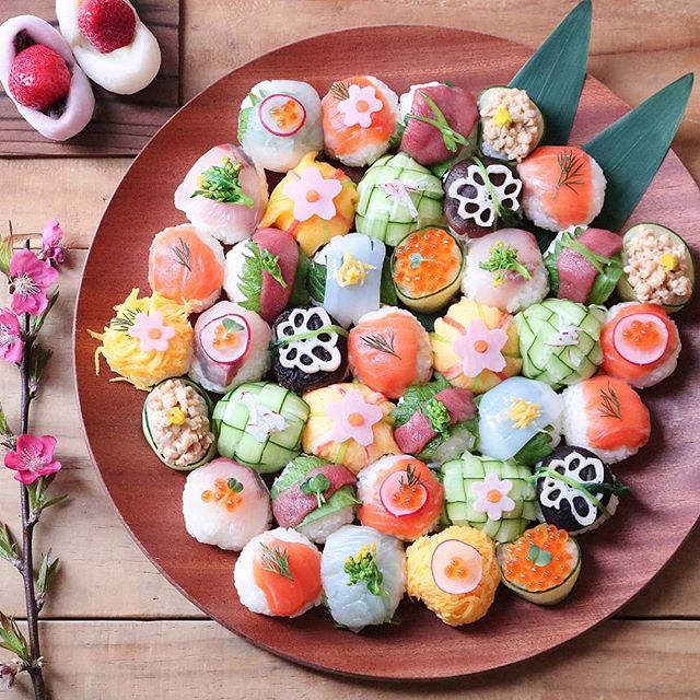 定番のちらし寿司の献立も良いですが、ちょっぴりアレンジして手まり寿司のひな祭りもおすすめですよ。