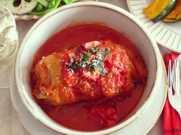 最後にご紹介する寒い季節に食べたい温かい食べ物、煮物料理は、トマト風味のロールキャベツです。